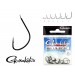 Fényes fekete, visszagörbített hegyű lapkás horog.